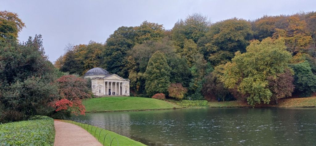 A lovely start to this week: a visit to Stourhead, one of the National Trust estates. We arrived on a slightly misty, wet, and gloomy morning—the kind of weather that doesn’t just threaten rain, it makes promises of it. Forewarned by modern sorcery (my phone’s Weather App), we came armed with ancient technology to ensure dryness: the mighty umbrella.